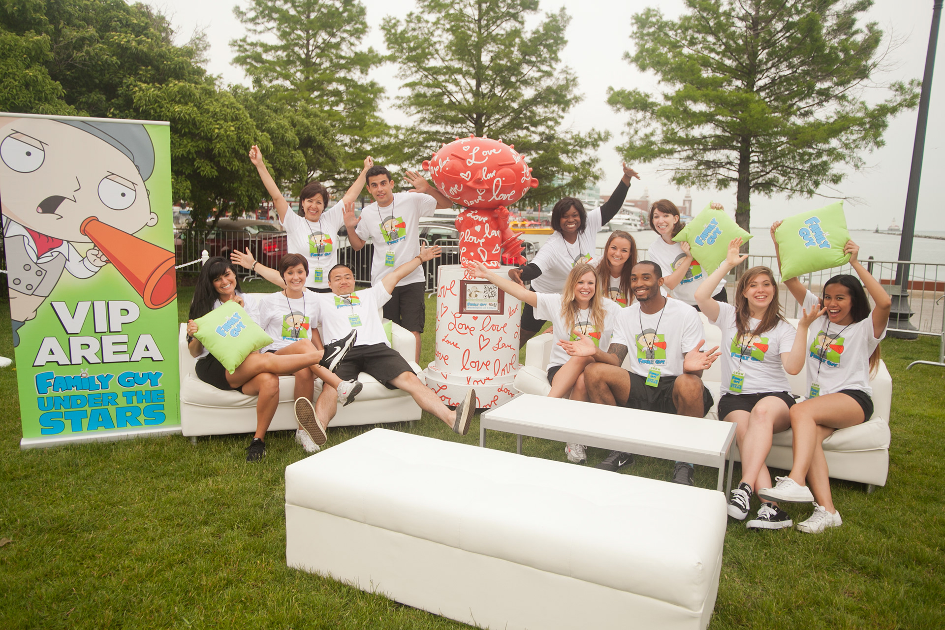 Together with Twentieth Television, I designed eleven life-sized replicas of Family Guy’s favorite toddler, Stewie Griffin, in order to encourage consumers to attend free outdoor screenings in New York and Chicago. The collection of statues included visual interpretations inspired by street art, Jackson Pollock-esque splatter, and even Stewie’s own rendition of Van Gogh’s Starry Night. The screenings drew thousands of consumers, and featured a VIP area complete with concession stand which hosted network executives and local radio contest winners.